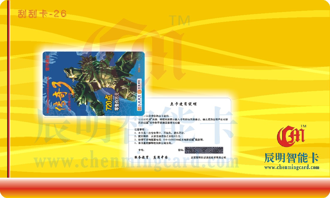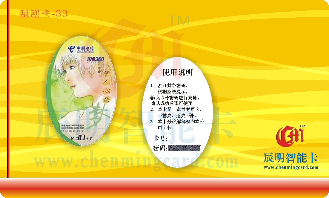 刮刮卡采用了現(xiàn)代印制技術(shù)與計算機(jī)信息技術(shù)相結(jié)合的綜合防偽技術(shù)產(chǎn)品,刮刮卡保證了數(shù)據(jù)的安全性,增強(qiáng)了防偽性能,提高了保密數(shù)據(jù)的印刷技術(shù)水平,大大增加了非法偽造的難度,廣泛應(yīng)用于各類充值卡。