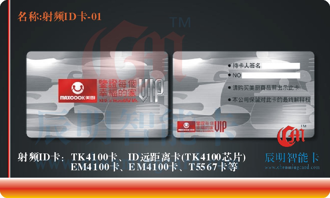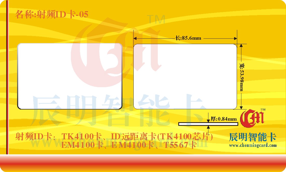 ● 芯 片:EM4102 Wafer ● 工作頻率:125KHZ ● 感應(yīng)距離:2-15cm ● 尺 寸:ISO標(biāo)準(zhǔn)卡 / 厚卡 / 多種異形卡 ● 封裝材料:PVC、ABS ● 封裝工藝:層壓、自動(dòng)粘貼、超聲波封裝 ● 號(hào) 碼:連號(hào)噴碼 ● 典型應(yīng)用:身份識(shí)別、考勤系統(tǒng)、門(mén)禁系統(tǒng)、財(cái)物標(biāo)識(shí)等
